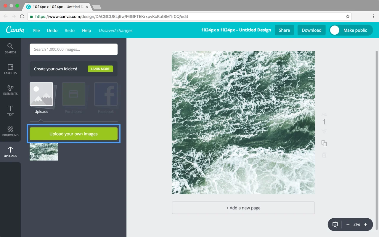 Drag your background image into Canva. Once it is uploaded, scale it to fill the whole background of your canvas.